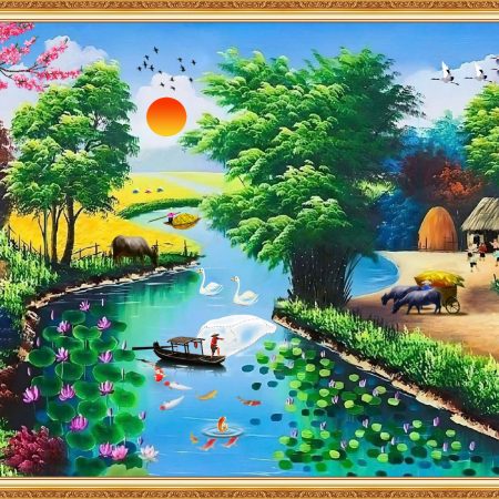 Tranh gạch Nano làng quê Việt Nam Q410